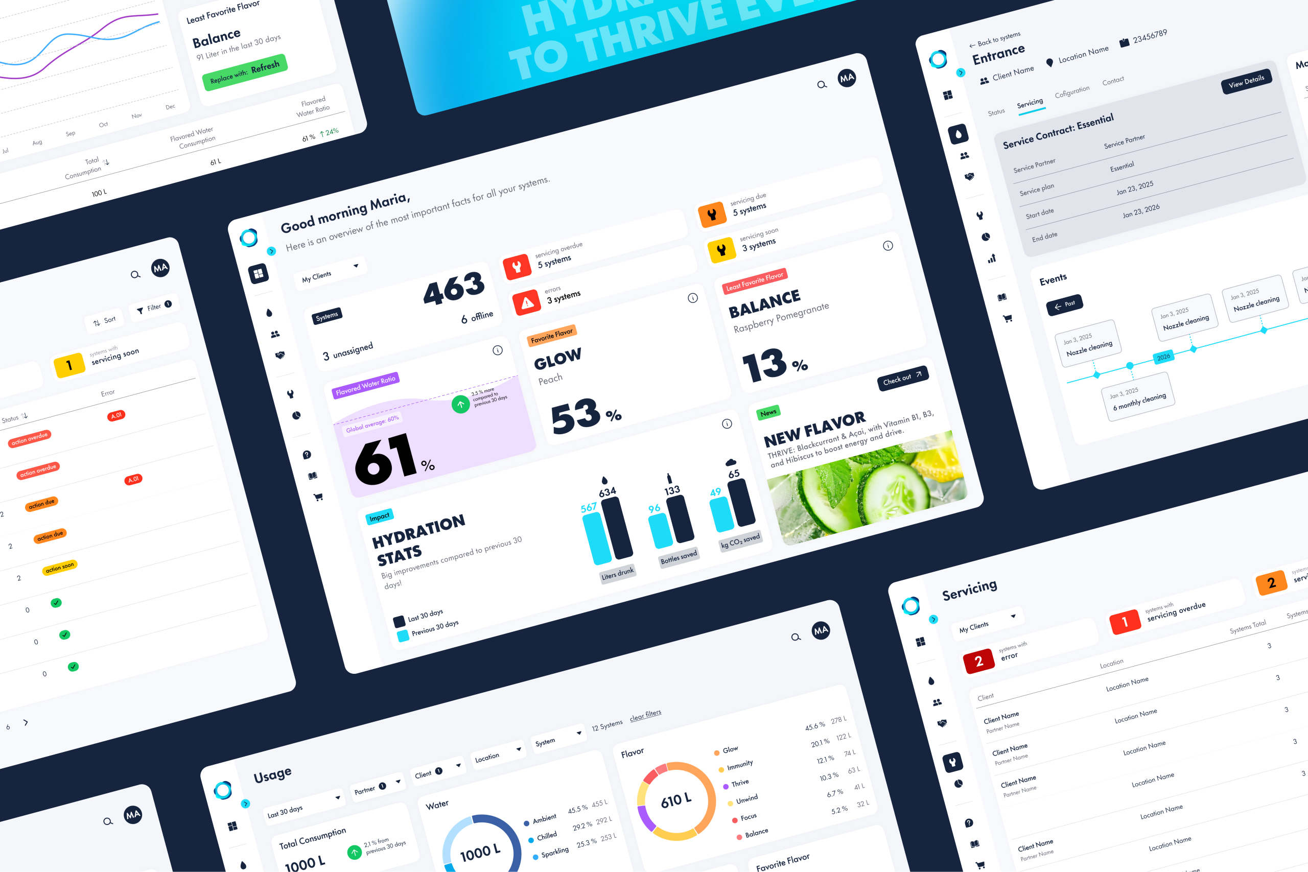 Aura is a fleet management platform that monitors drink dispensers, tracking operational status and flagging issues or flavors that need restocking. Beyond day-to-day monitoring, it provides business insights to support more informed commercial decisions.