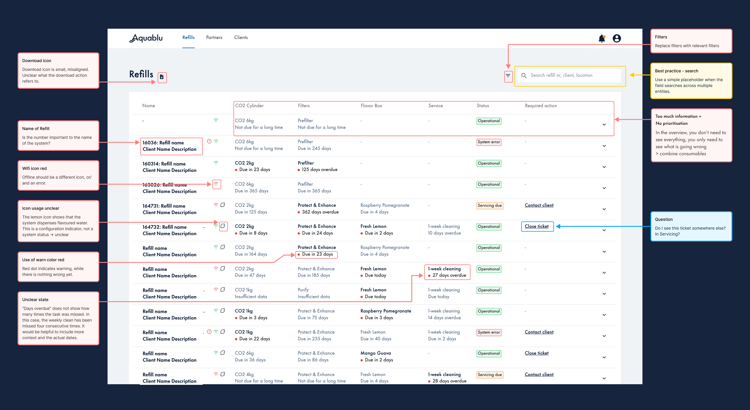 This challenge extended beyond Aquablu’s internal operations. Partners servicing and selling Aquablu systems also needed clear visibility into system health and performance, but the dashboard was too difficult to use, so they often avoided it. These limitations prevented partners from delivering the level of service that Aquablu expected.